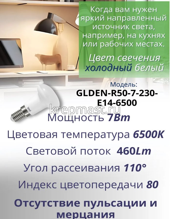 Лампа R50 7Вт Е14 6500К — идеальное решение для яркого и экономичного освещения!