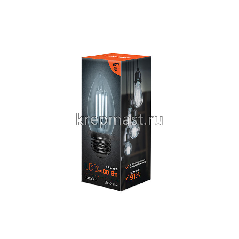 Лампа свеча 7,5Вт Е27 4000K в интернет-магазине «Мастер Крепежа» по цене 122 руб. Более 12 наименований товаров в наличии в категории Лампы светодиод. СВЕЧА. Купить лампа свеча 7,5вт е27 4000k в Чебоксарах выгодно Вы можете on-line на нашем сайте, или отправив заявку по почте, а также по телефону или в пункте выдачи компании г. Казань, ул. Татарстан, 9, магазин "Мастер Крепежа". Доставка по Республике Татарстан и другие регионы РФ.