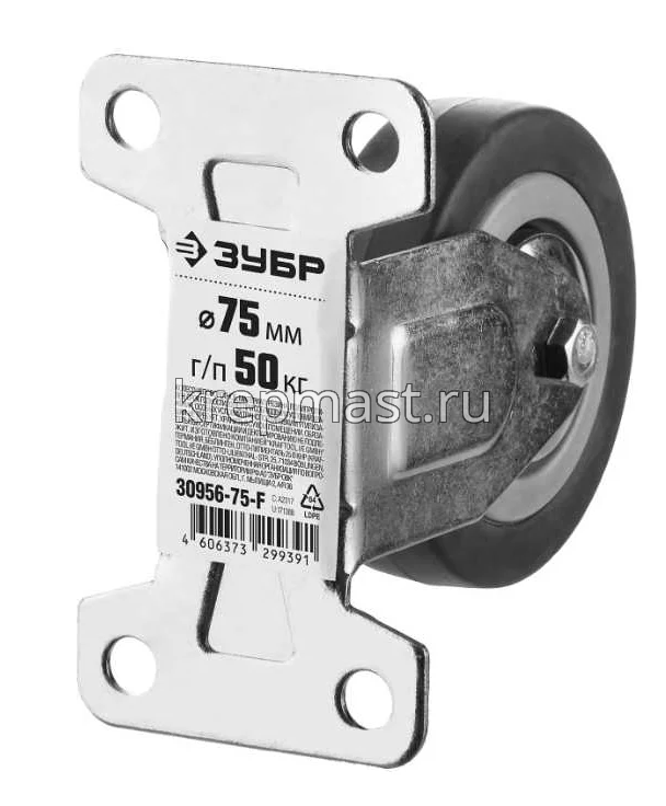 Колесо д. 75мм НЕПОВОРОТНОЕ ЗУБР на площадке резина (г/п 50кг)