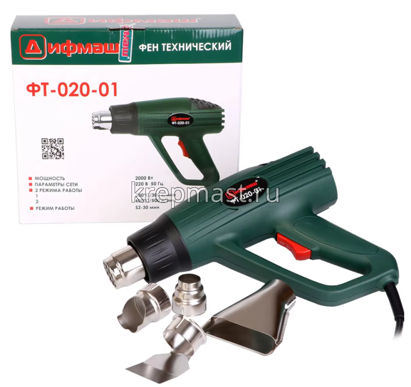 Фен ДИФМАШ (2000Вт, 300-600С ) в интернет-магазине «Мастер Крепежа» по цене 1729 руб. Более 9 наименований товаров в наличии в категории Фены технические. Купить фен дифмаш (2000вт, 300-600с ) в Чебоксарах выгодно Вы можете on-line на нашем сайте, или отправив заявку по почте, а также по телефону или в пункте выдачи компании г. Казань, ул. Татарстан, 9, магазин "Мастер Крепежа". Доставка по Республике Татарстан и другие регионы РФ.