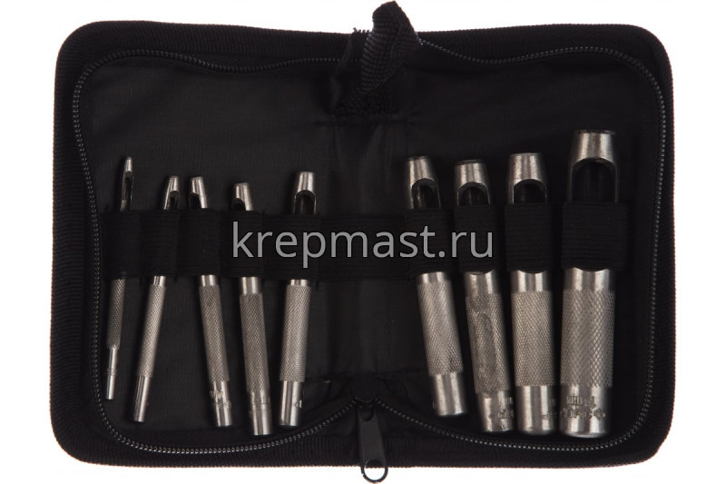Набор пробойников для кожи 2 - 13мм, 9шт Зубр МАСТЕР представляет собой комплект инструментов из высококачественной закаленной стали с прецизионной заточкой рабочих частей. Приспособления гарантируют изготовление идеально ровных срезов. Каждый компонент обладает повышенным рабочим ресурсом. Пробойники служат для выполнения круглых отверстий в различных мягких листовых материалах с применением ударного инструмента, например, молотка. Рельефная захватная поверхность препятствует скольжению ладони мастера в процессе выполнения работ.