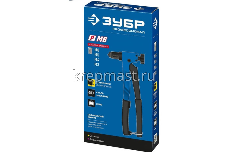 Заклепочник ЗУБР Р-М6 двуручный для резьбовых заклепок М3, М4, М5, М 6мм в интернет-магазине «Мастер Крепежа» по цене 3862 руб. Более 10 наименований товаров в наличии в категории ЗАКЛЕПОЧНИКИ. Купить заклепочник зубр р-м6 двуручный для резьбовых заклепок м3, м4, м5, м 6мм в Чебоксарах выгодно Вы можете on-line на нашем сайте, или отправив заявку по почте, а также по телефону или в пункте выдачи компании г. Казань, ул. Татарстан, 9, магазин "Мастер Крепежа". Доставка по Республике Татарстан и другие регионы РФ.
