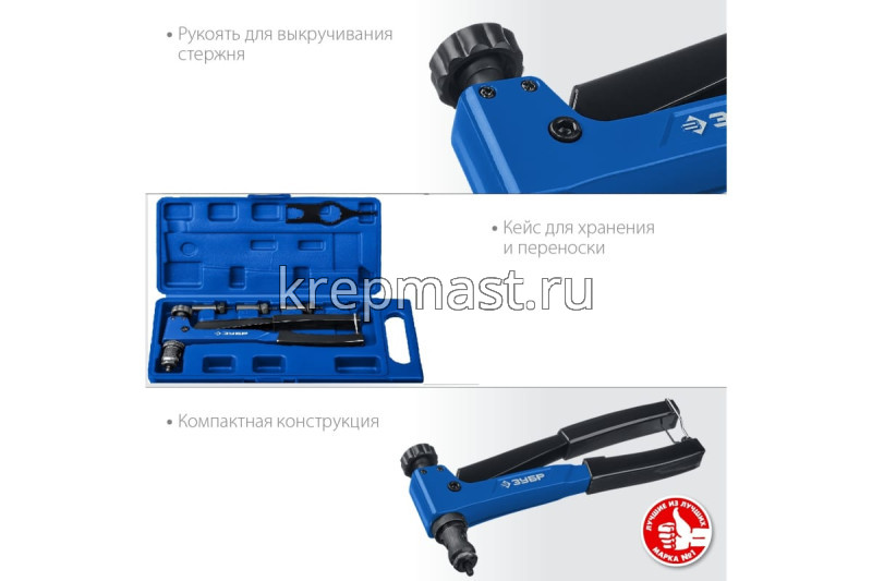 Заклепочник ЗУБР Р-М6 двуручный для резьбовых заклепок М3, М4, М5, М 6мм