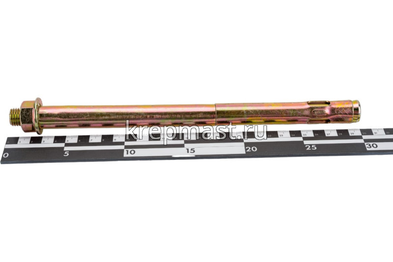 Анкер с гайкой 20 х 300 изготовлен из высокоуглеродистой стали со специальным цинковым покрытием и применяется для надежного крепления тяжеловесных конструкций к твердым основаниям из полнотелых материалов.