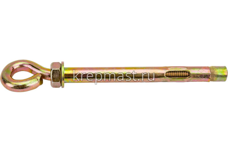 Анкерный болт с кольцом 12 х 130 является элементом крепежа для фиксации тяжелых подвесных конструкций, соединения с тросами и цепями.