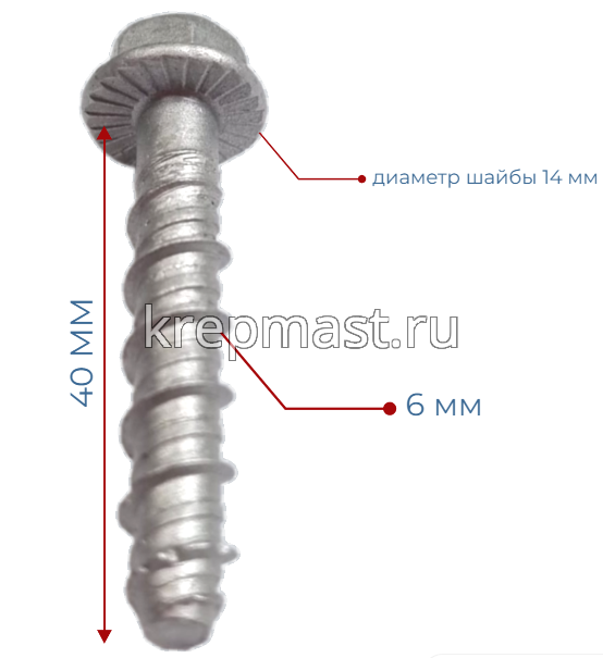 Шуруп по бетону PBW 6х 40мм (7,5х40мм шестигран.гол с п/ш) - предназначен для сквозного монтажа с крепллением к бетонну с предварительным засверливанием без использования дюбеля.