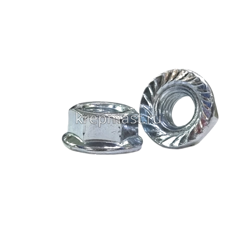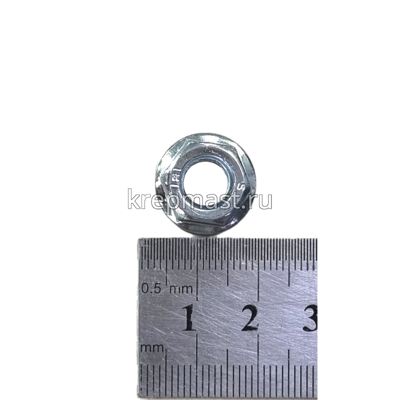 Гайка с фланцем М 8 DIN 6923 крепежный элемент, совмещающий в себе шестигранную гайку с одной стороны и фланец (плоскую деталь круглой формы) — с другой.