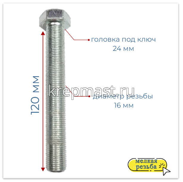Болт DIN 961 16х120х1,5 кл.пр. 8,8 ОЦИНК. п/р с мелкой резьбой