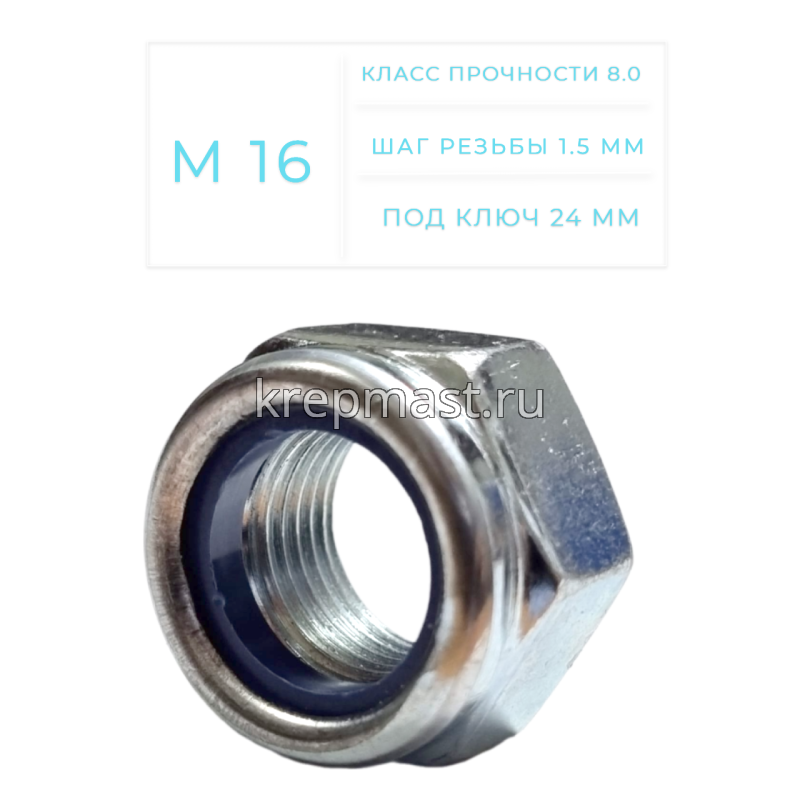 Гайка самоконтр.М16 (шаг резьбы 1,5) оц. DIN 985