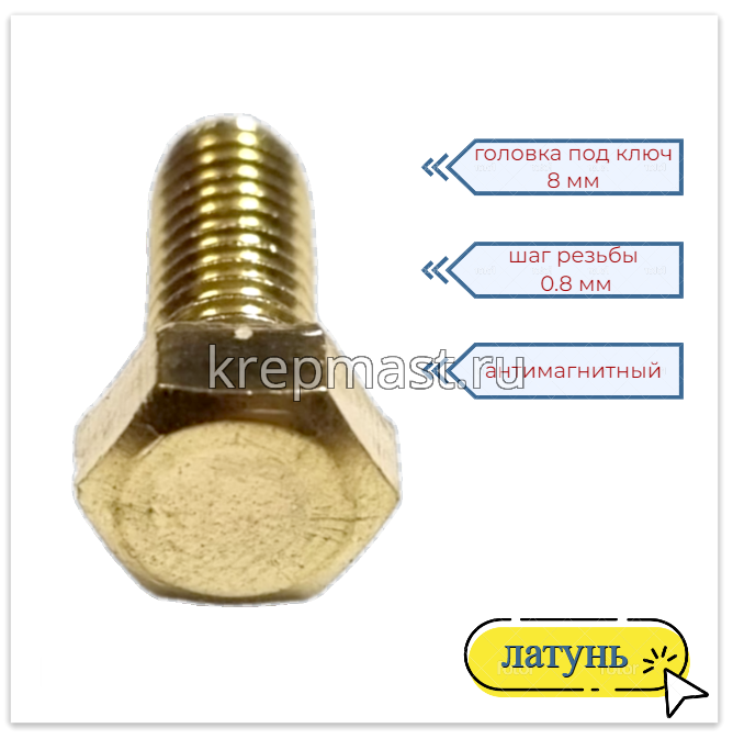 Болт 5х12 DIN 933 латунь в интернет-магазине «Мастер Крепежа» по цене 31 руб. Более 26 наименований товаров в наличии в категории Болты латунные DIN 933. Купить болт 5х12 din 933 латунь в Чебоксарах выгодно Вы можете on-line на нашем сайте, или отправив заявку по почте, а также по телефону или в пункте выдачи компании г. Казань, ул. Татарстан, 9, магазин "Мастер Крепежа". Доставка по Республике Татарстан и другие регионы РФ.