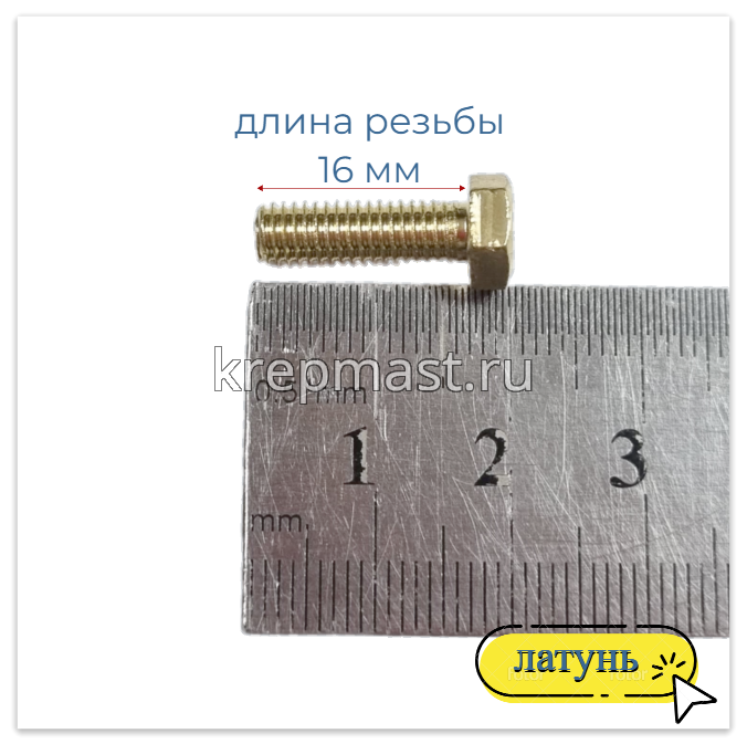Болт 5х16 DIN 933 латунь в интернет-магазине «Мастер Крепежа» по цене 38 руб. Более 26 наименований товаров в наличии в категории Болты латунные DIN 933. Купить болт 5х16 din 933 латунь в Чебоксарах выгодно Вы можете on-line на нашем сайте, или отправив заявку по почте, а также по телефону или в пункте выдачи компании г. Казань, ул. Татарстан, 9, магазин "Мастер Крепежа". Доставка по Республике Татарстан и другие регионы РФ.