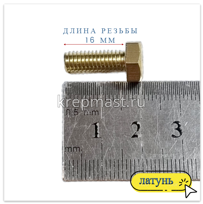 Латунный болт М6 х 16 устанавливается в узел сборки торцевой головокой или гаечным ключом диаметром 10 мм.