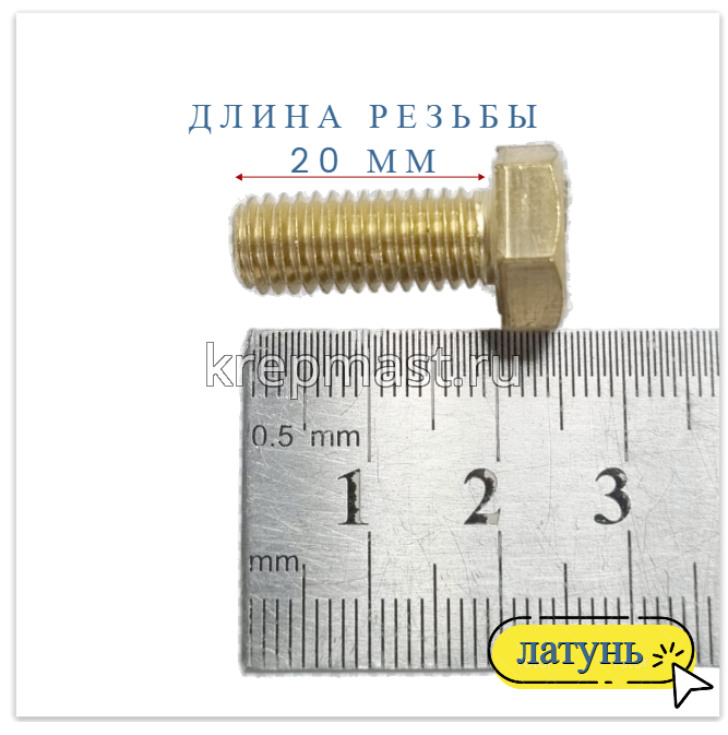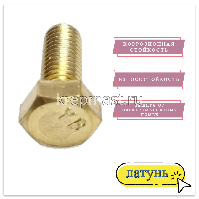 Болт 8х20 DIN 933 латунь в интернет-магазине «Мастер Крепежа» по цене 99 руб. Более 26 наименований товаров в наличии в категории Болты латунные DIN 933. Купить болт 8х20 din 933 латунь в Чебоксарах выгодно Вы можете on-line на нашем сайте, или отправив заявку по почте, а также по телефону или в пункте выдачи компании г. Казань, ул. Татарстан, 9, магазин "Мастер Крепежа". Доставка по Республике Татарстан и другие регионы РФ.