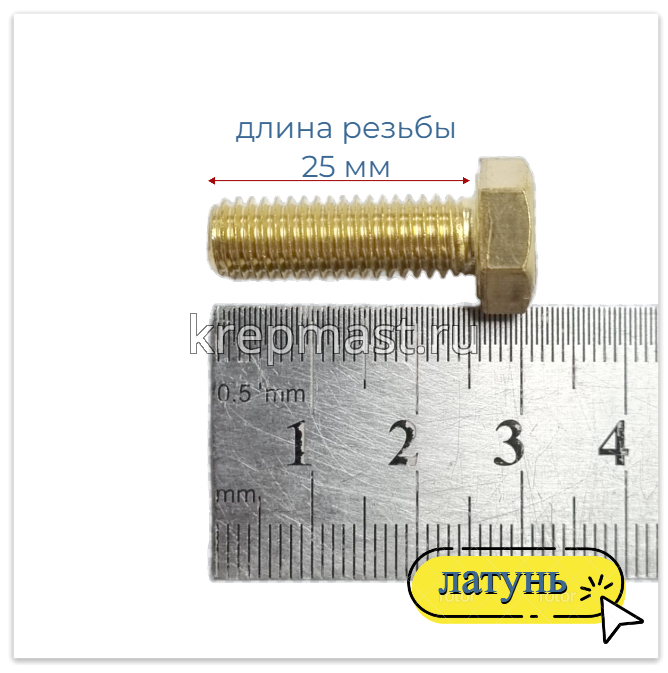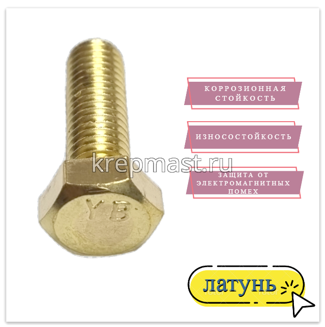 Болт 8х25 DIN 933 латунь в интернет-магазине «Мастер Крепежа» по цене 113 руб. Более 26 наименований товаров в наличии в категории Болты латунные DIN 933. Купить болт 8х25 din 933 латунь в Чебоксарах выгодно Вы можете on-line на нашем сайте, или отправив заявку по почте, а также по телефону или в пункте выдачи компании г. Казань, ул. Татарстан, 9, магазин "Мастер Крепежа". Доставка по Республике Татарстан и другие регионы РФ.