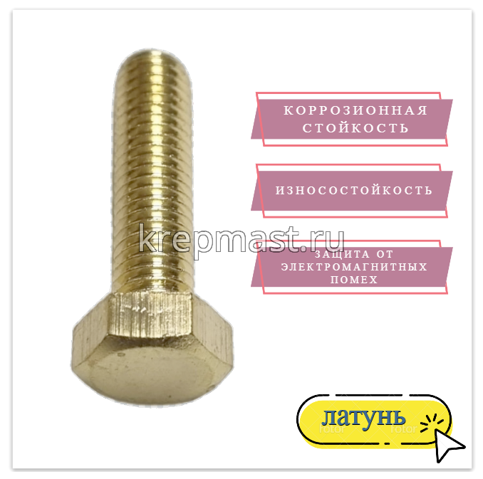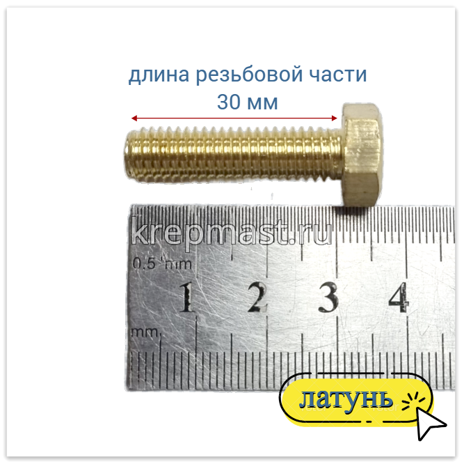 Болт 8х30 DIN 933 латунь в интернет-магазине «Мастер Крепежа» по цене 209 руб. Более 26 наименований товаров в наличии в категории Болты латунные DIN 933. Купить болт 8х30 din 933 латунь в Чебоксарах выгодно Вы можете on-line на нашем сайте, или отправив заявку по почте, а также по телефону или в пункте выдачи компании г. Казань, ул. Татарстан, 9, магазин "Мастер Крепежа". Доставка по Республике Татарстан и другие регионы РФ.