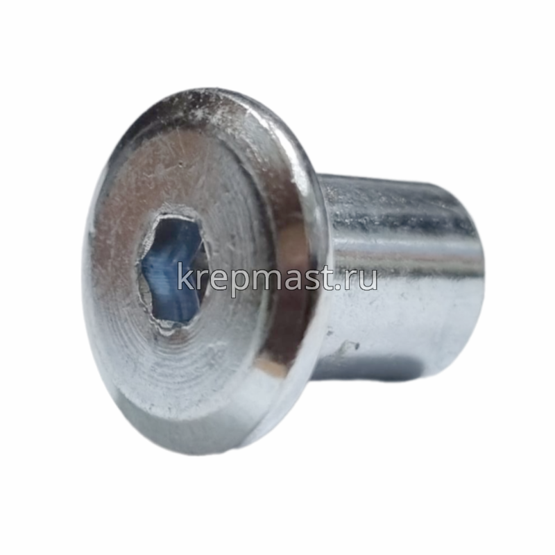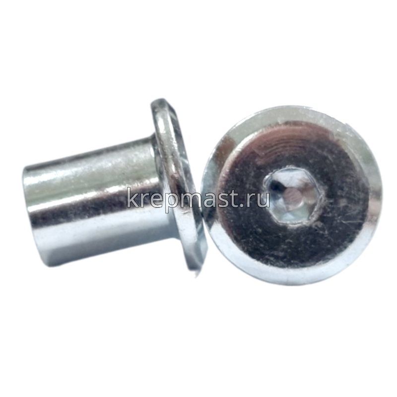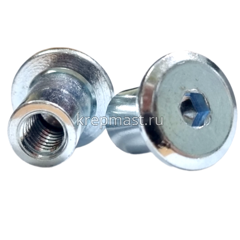 Гайка Эриксона с плоской головкой М6 (сталь) применяется с мебельными винтами для соединения, стяжки элементов и конструкций при производстве мебели.