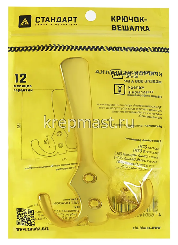 Крючок 306 А GР золото СТАНДАРТ в интернет-магазине «Мастер Крепежа» по цене 132 руб. Более 12 наименований товаров в наличии в категории Крючок-вешалка. Купить крючок 306 а gр золото стандарт в Чебоксарах выгодно Вы можете on-line на нашем сайте, или отправив заявку по почте, а также по телефону или в пункте выдачи компании г. Казань, ул. Татарстан, 9, магазин "Мастер Крепежа". Доставка по Республике Татарстан и другие регионы РФ.