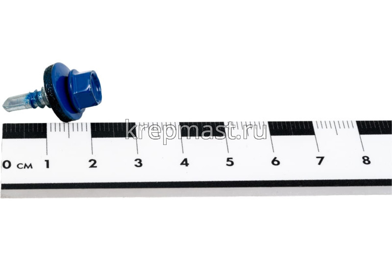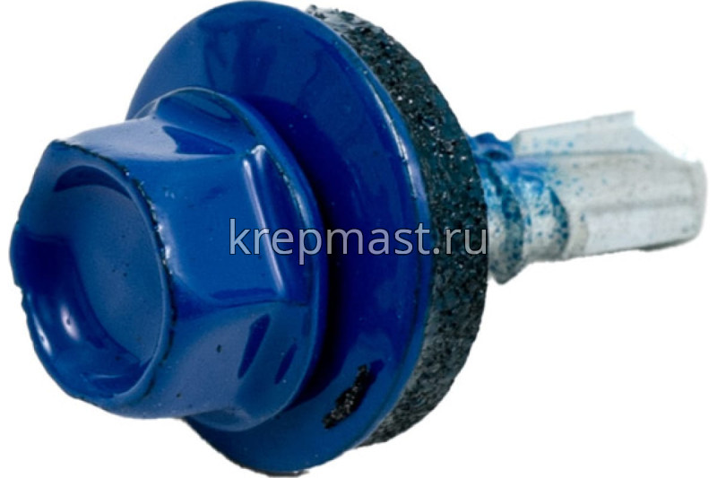 Кровельный саморез окрашенный с шайбой и резиновой прокладкой EPDM DIN 7504 5,5 х 19 по металлу RAL 5005 (цвет ярко-синий) - представляет из себя саморез с шестигранной головкой, фланцем и резиновой прокладкой для эффективного прижатия листового металла к основанию.