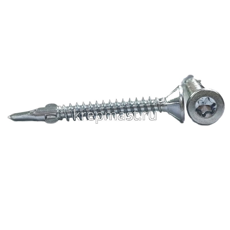 Саморез кровельный ТХ20 с ушками без шайбы DIN 7504 P 4,2х38 потай. - сверло оцинк. Rusconnect применяется для крепления деревянной доски к металлической обрешетке. На острие самореза находится бур с двумя выступающими "ушками", которые свободно проходят через древесину и обламываются, когда саморез достигает металла. На нижней стороне потайной головки есть несколько выступов предназначенных для самозенковки и аккуратного утапливания заподлицо с поверхностью. Помимо досок данными саморезами можно крепить фанеру, ДСП и плиты МДФ.