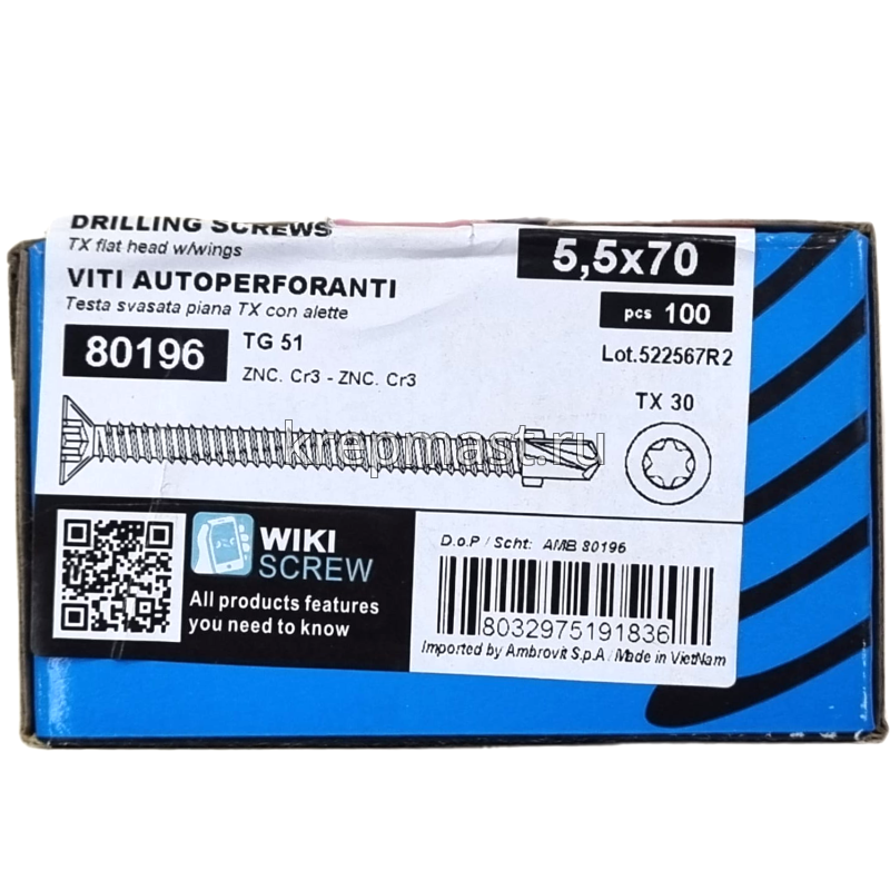 Саморез кров. ТХ30 с УШКАМИ б/шайбы DIN 7504 P 5,5х70 потай. - сверло оцинк. в Чебоксарах