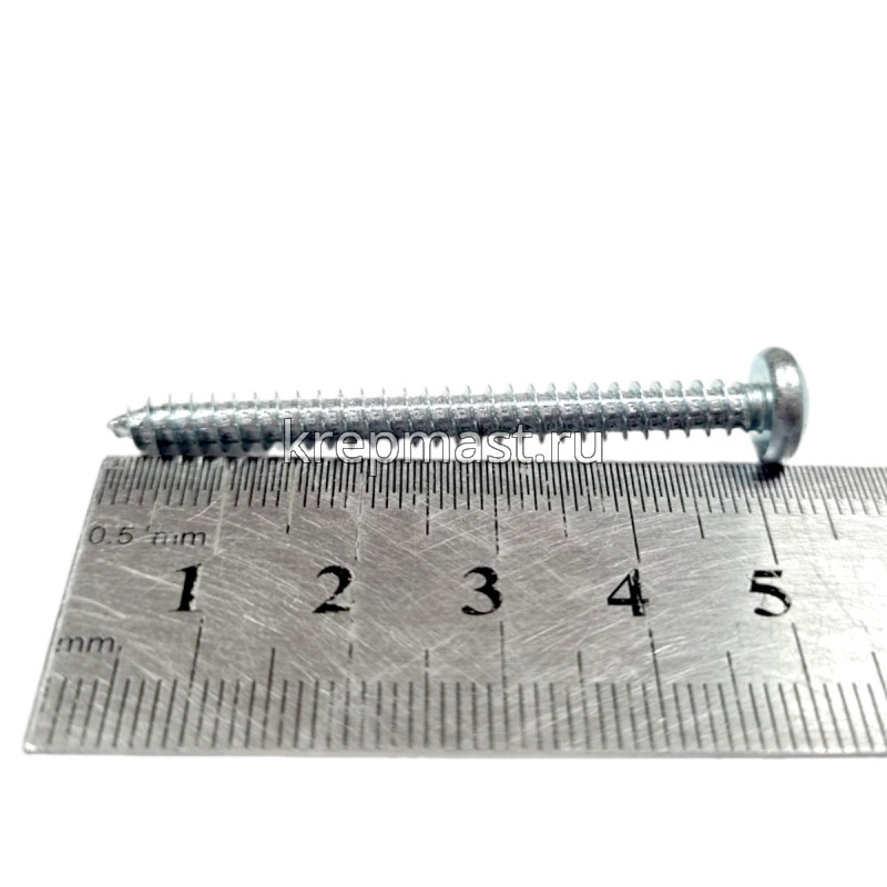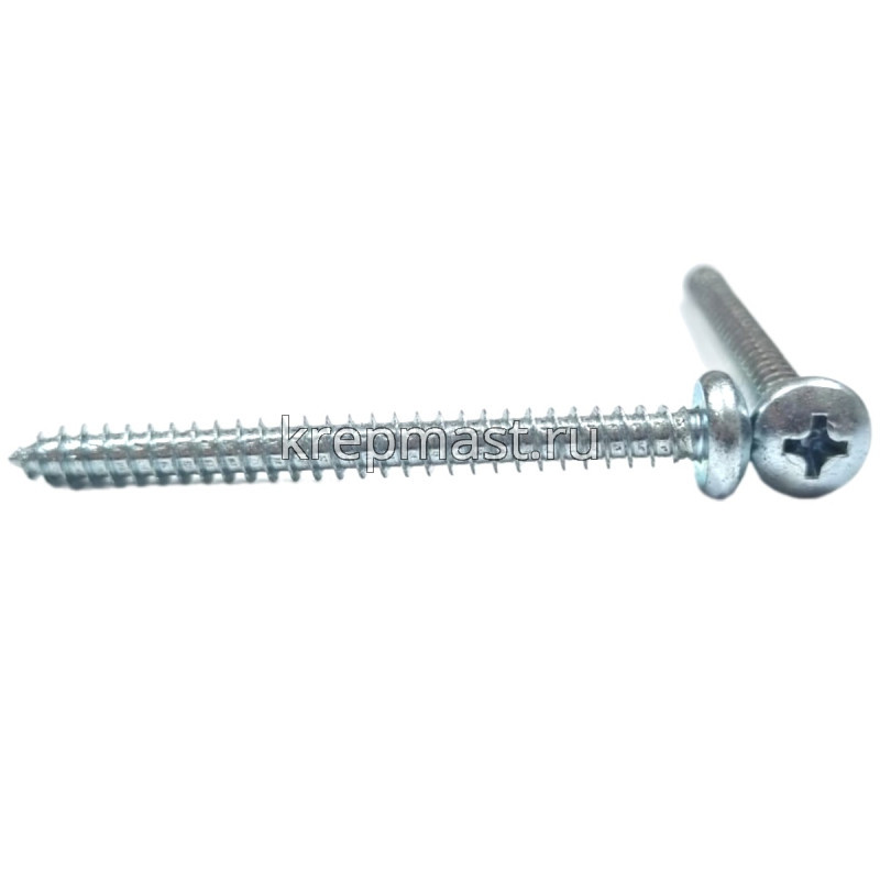 Саморез по металлу с полусферической головкой и острым концом DIN 7981 4.8 x 50 применяется для крепления стальных и других листовых материалов (дерево, фанера) к металлическим и деревянным несущим конструкциям.