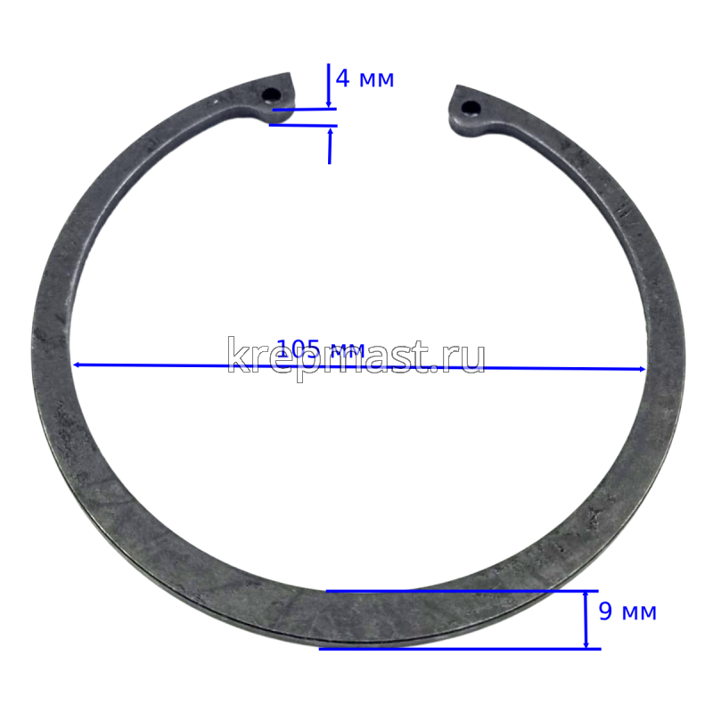Кольцо пружинное упорное на отверстие DIN 472 М105 используется для крепления подшипников и других деталей, в посадочных отверстиях различных деталей, в машиностроении и других отраслях народного хозяйства. Предотвращяет смещение деталей и подшипников относительно друг друга.