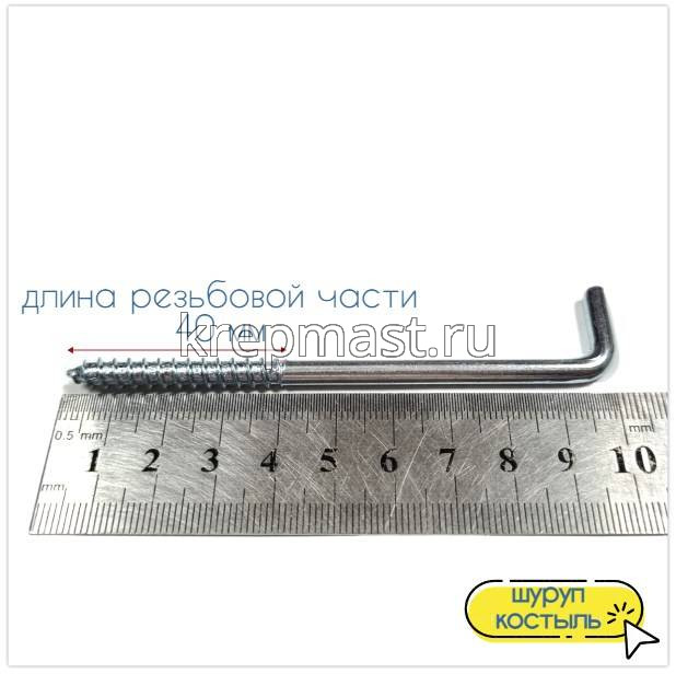 Шуруп костыль 6,0 х 100,0- костыль с шурупной резьбой устанавливается в пластиковый дюбель или в дерево. Находит широкое применение в домашнем хозяйстве.