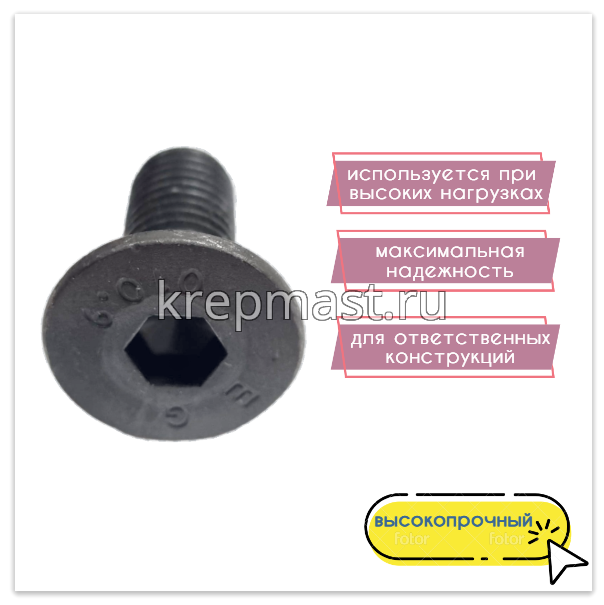 Винт с внут. шестиг. потай голов. 12х 30 кл.пр.10,9 DIN 7991 оц. / черный в интернет-магазине «Мастер Крепежа» по цене 55 руб. Более 10 наименований товаров в наличии в категории Винт DIN 7991 с внутр.шестигр. (потай) 12мм. Купить винт с внут. шестиг. потай голов. 12х 30 кл.пр.10,9 din 7991 оц. / черный в Чебоксарах выгодно Вы можете on-line на нашем сайте, или отправив заявку по почте, а также по телефону или в пункте выдачи компании г. Казань, ул. Татарстан, 9, магазин "Мастер Крепежа". Доставка по Республике Татарстан и другие регионы РФ.