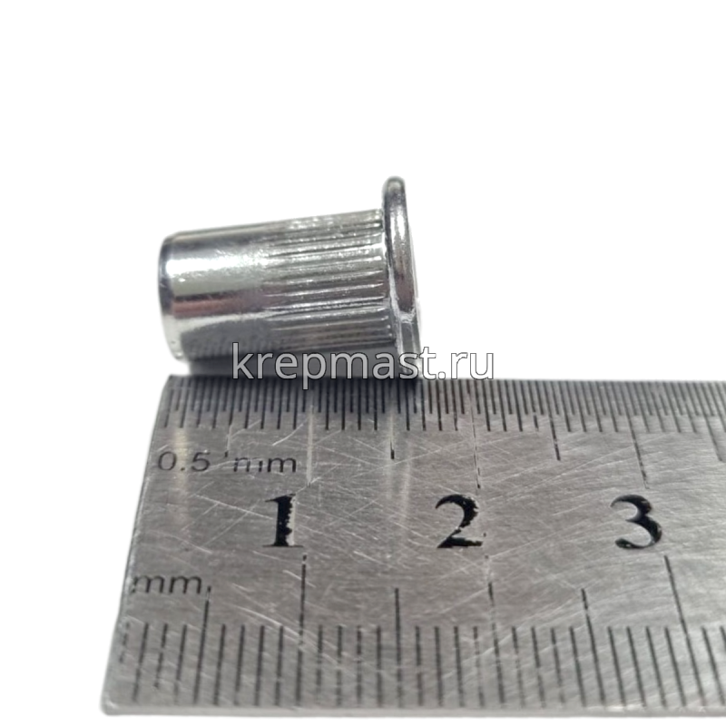 Клепки резьбовые М6 изготавливают из прочной и устойчивой к воздействию коррозии оцинкованной стали.
