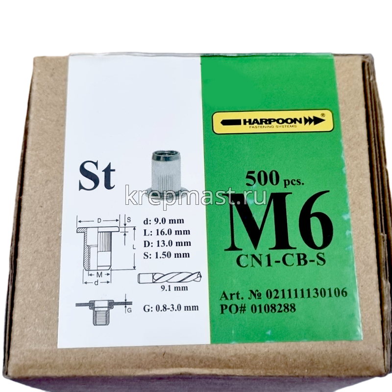 Гайка-заклепка HARPOON М 6 х 16,5мм CN1-CB-S цилиндрический борт, первая длина в Чебоксарах