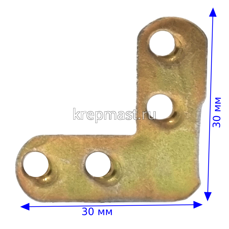 Уголок-пластина 30 х 30 желтый с закругленными углами — крепежный элемент с равными по размеру сторонами. С его помощью можно, в значительной степени, усилить ту или иную деревянную конструкцию, придав ей дополнительные жесткость и надежность. Материал: сталь.