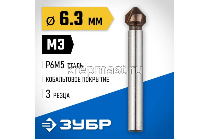 Зенкер ЗУБР конус, цилиндр.хвост. 3мм(д.6,3х45мм) в Чебоксарах