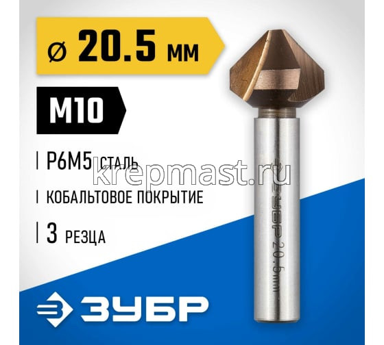 Зенкер ЗУБР конус, цилиндр.хвост.10мм(д.20,5х63мм) в Чебоксарах