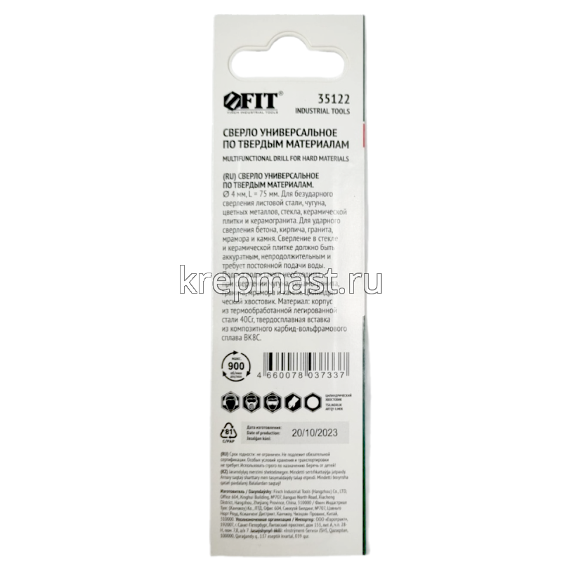 Сверло универсальное 4х75мм (сталь, чугун, цв.мет, стекло, керамогранит) в интернет-магазине «Мастер Крепежа» по цене 136 руб. Более 13 наименований товаров в наличии в категории СВЕРЛА универсальные (опалубочные). Купить сверло универсальное 4х75мм (сталь, чугун, цв.мет, стекло, керамогранит) в Чебоксарах выгодно Вы можете on-line на нашем сайте, или отправив заявку по почте, а также по телефону или в пункте выдачи компании г. Казань, ул. Татарстан, 9, магазин "Мастер Крепежа". Доставка по Республике Татарстан и другие регионы РФ.