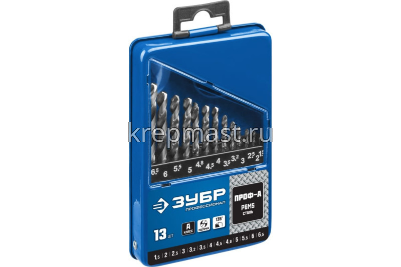 Сверла ЗУБР по металлу 13шт (1,5-6,5мм) обладают повышенной производительностью, имеют оптимальные углы заточки и выполнены из высококачественных быстрорежущих сталей по специальной технологии.
