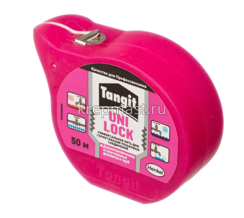 Нить для герметизации ТАНГИТ 50 м - универсальная нитьпредназначена для герметизации резьбовых соединений труб холодной и горячей воды, питьевой воды, газа диаметром до 6 дюймов. В течение 72 часов после сборки позволяет, не теряя герметичности, регулировать соединения труб. Используется для холодной и горячей воды (до +130°С) и для газов. Тангит Уни-Лок может быть использован при температуре от -20°С до +130°С при максимальном рабочем давлении 16 бар.