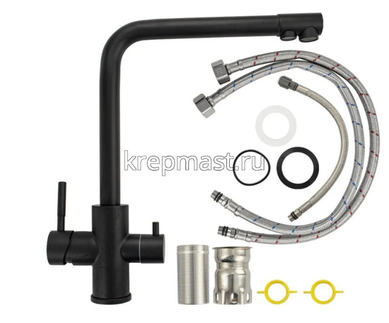 Смеситель д/кухни MAGNUS 91120 черный с Гобраз.гусаком для питьевой воды