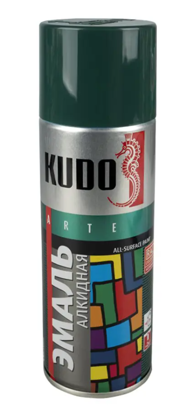 Универсальная алкидная краска эмаль-аэрозоль KUDO RAL 1007 темно-зеленая 520 мл удобна в нанесении за счет спрей-системы, используется для покраски стекла, пластика, бумаги, дерева, металла и др. Краска быстро высыхает и обладает высокой адгезией. Применяется для наружных и внутренних работ. Краска устойчива к ультрафиолету.